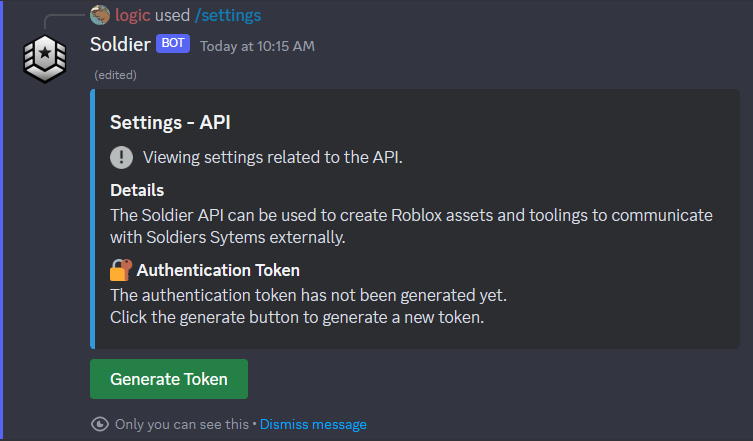 In order to use the Soldier API, you must obtain an authentication token from the guild.