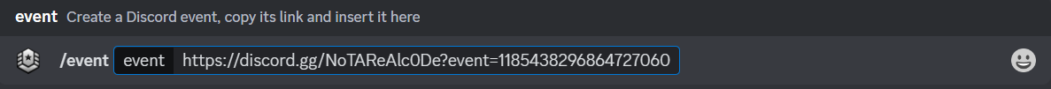 command, you should first create a Discord event, and copy its join url/event ID/event link.