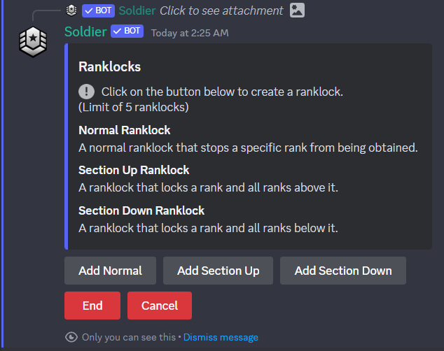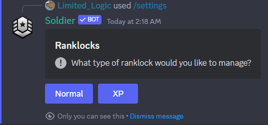 If you have the XP System enabled, you will be asked to choose between Normal and Xp rank locks.