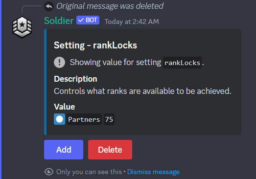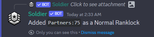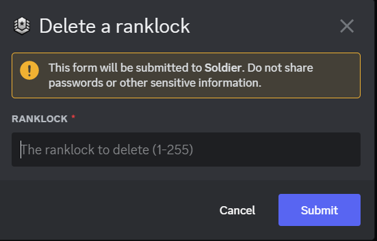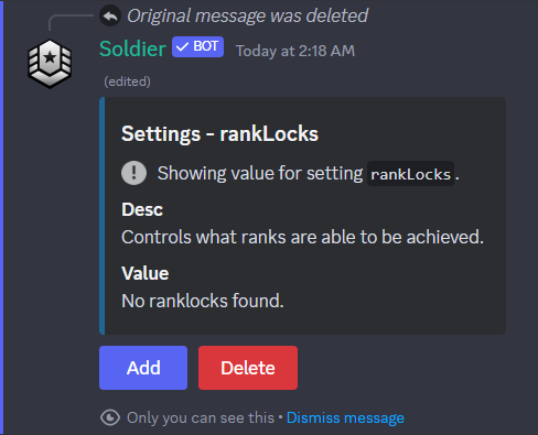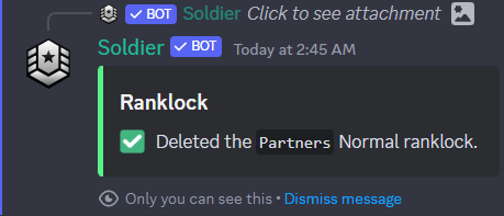 If you did not see the above response, you should just see a list of rank locks that have been created.